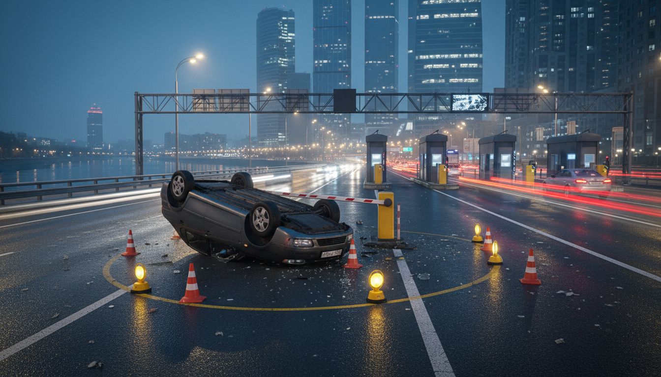 В Кировском районе нетрезвый водитель не въехал в ворота оплаты и опрокинул автомобиль