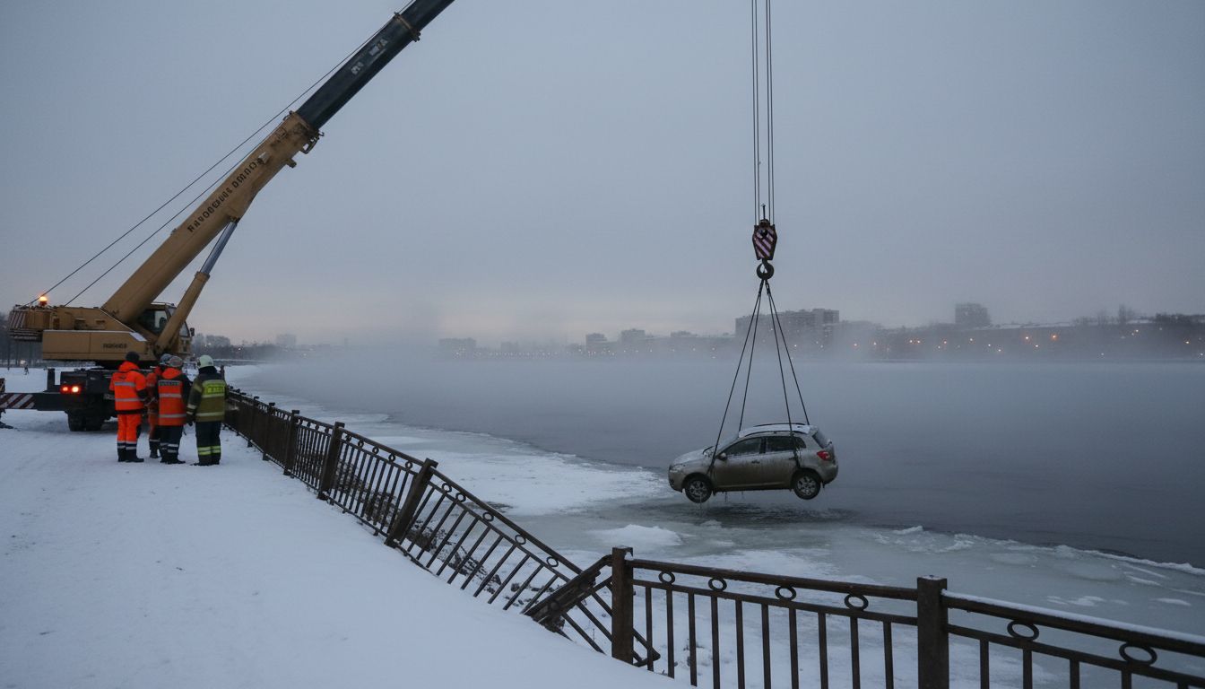 Легковушка пробила ограждение и упала в воду ранним утром 7 декабря