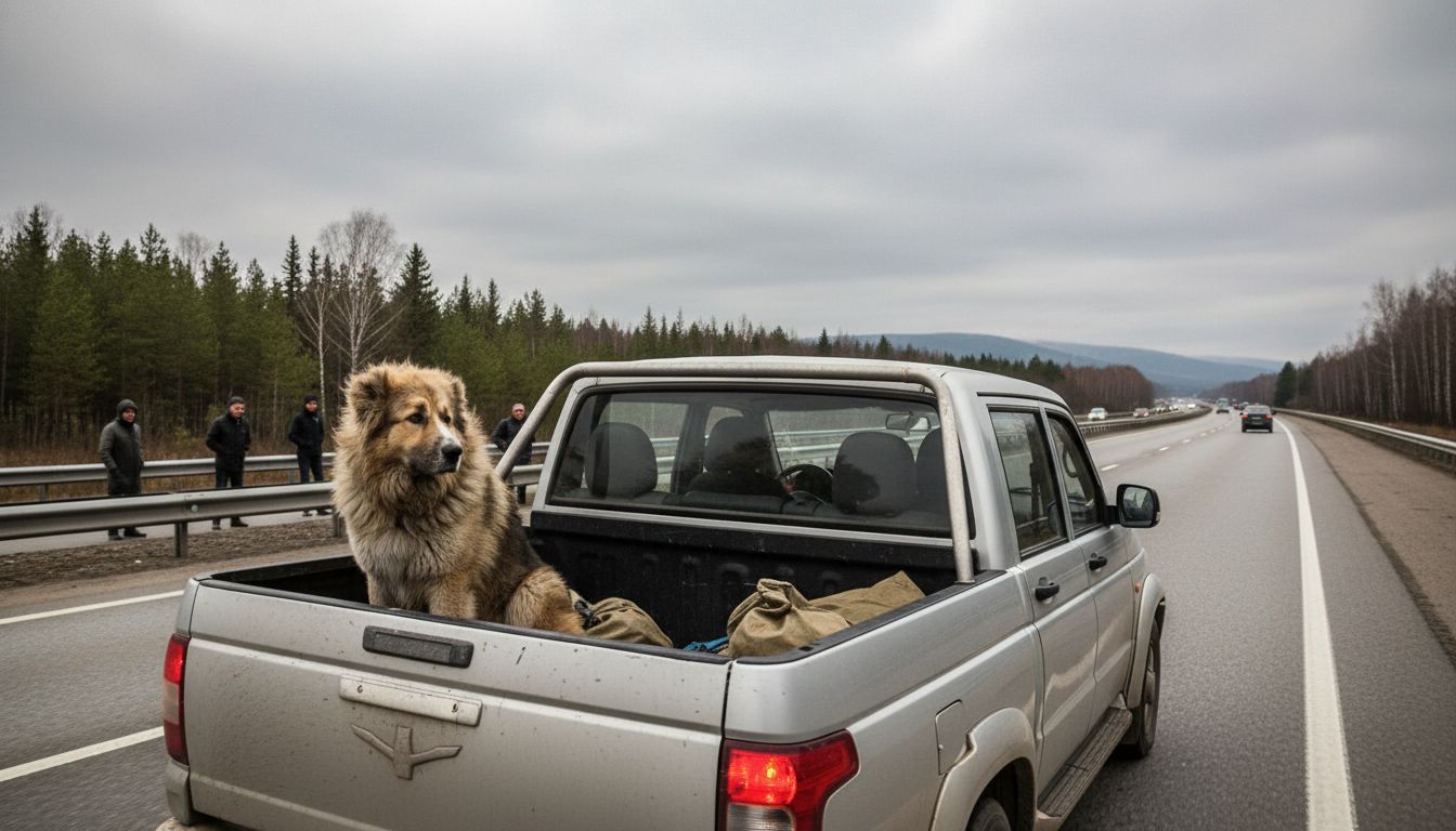 Собаку везли в открытом кузове пикапа на Киевском шоссе