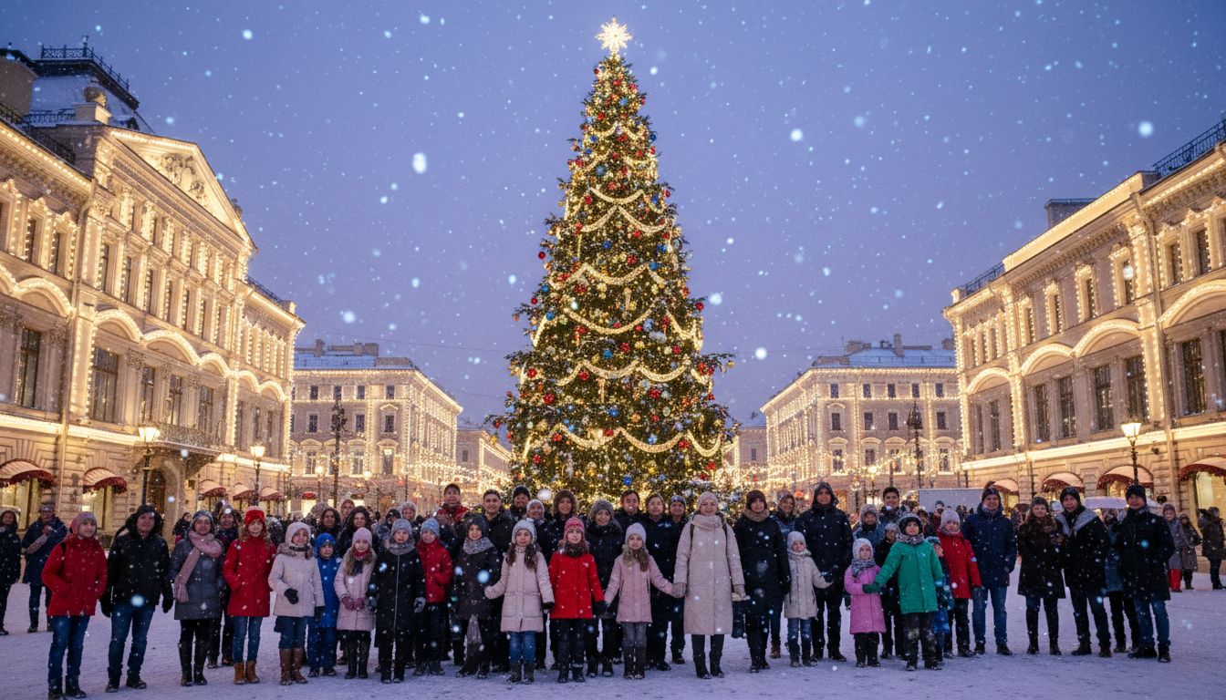 На Дворцовой площади зажгли главную ёлку Петербурга