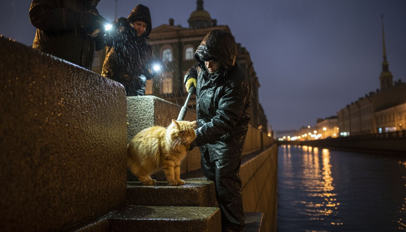Кот Марс, застрявший в набережной канала Грибоедова, вернулся домой