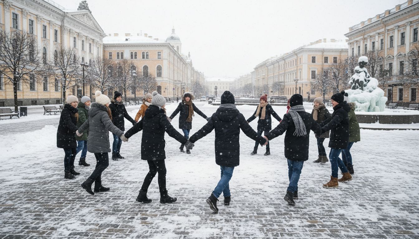 Молодёжь вышла на улицы города, чтобы отметить начало зимы танцами и общением