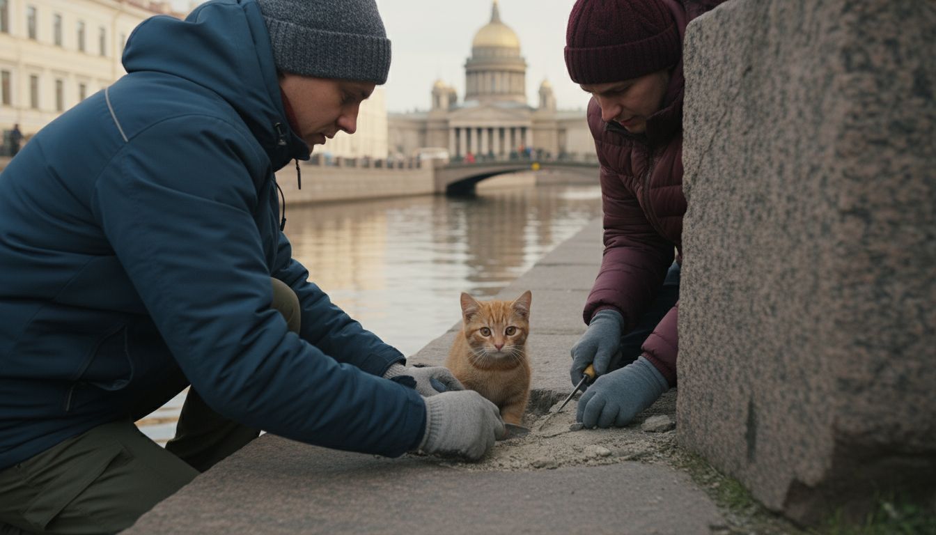Несколько дней волонтёры вытаскивали животное из узкой щели у канала Грибоедова